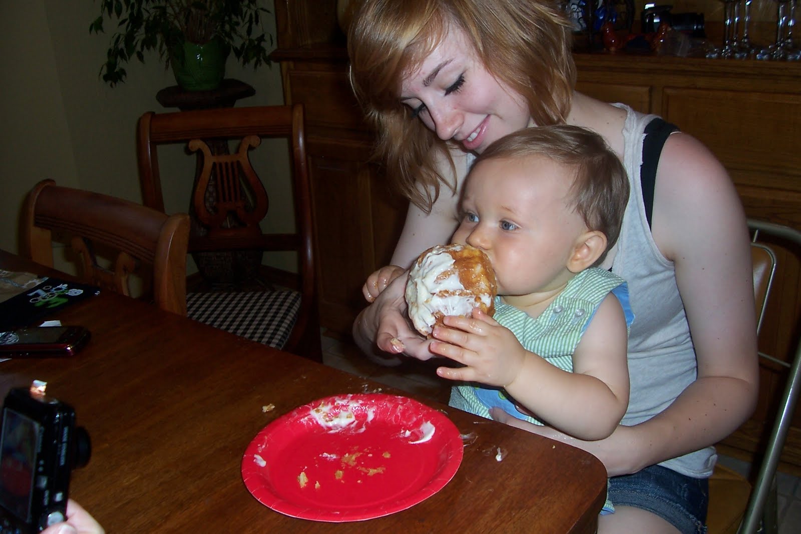 I can't believe that Trey is actually turning 1 today! I woke up in Texas this morning thinking about every little thing in life that led to the birth of God's Greatest gift to David and I. By the time it was 7 a.m. in Texas I had sung Happy Birthday to Trey about three times along with Memommy. We had been in Texas for Meredith's High School graduation and just so happened to be flying back on Trey's actual birthday. We kicked off Trey's Birthday week in Texas with Mere's graduation party on Sunday and a "Happy Birthday to you" followed by a taste of his first cake!!